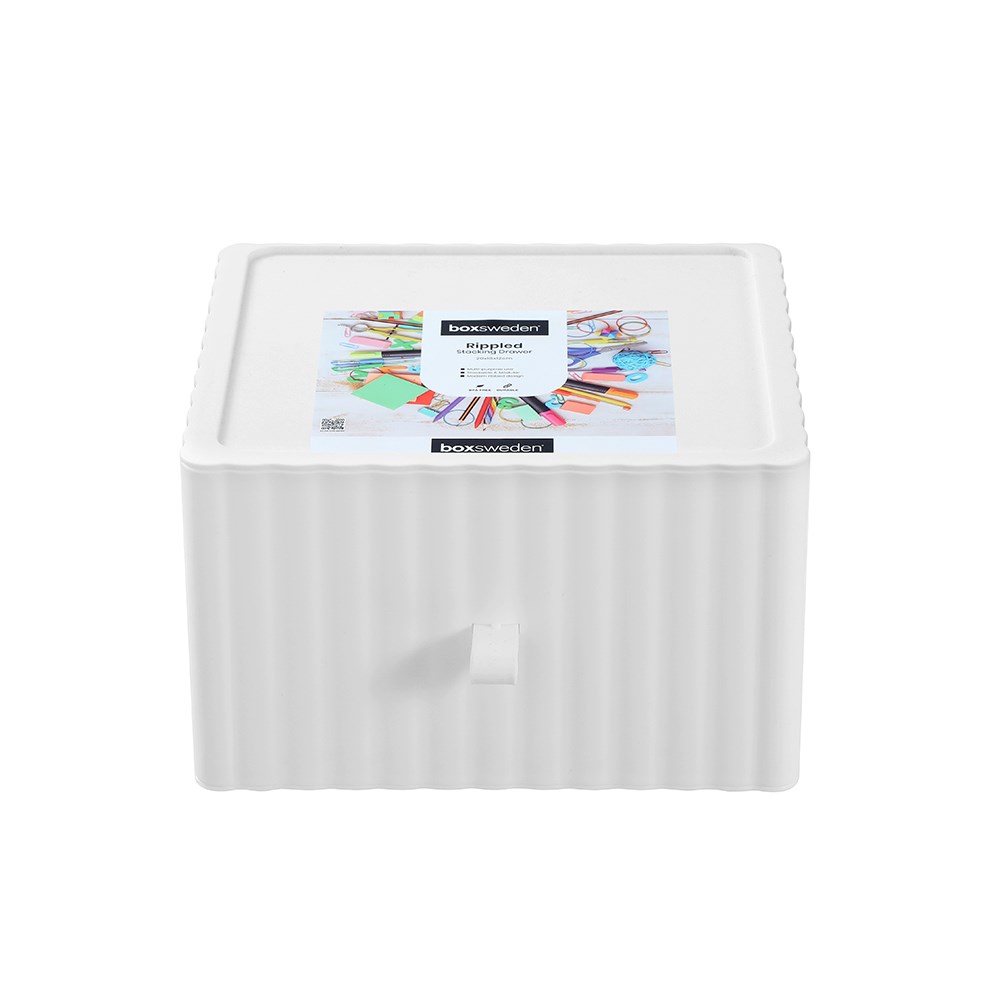 Our Boxsweden Rippled Stacking Drawer features a stylish, textured design that adds a touch of elegance to any room. Ideal for organising cosmetics, stationery, kitchen tools, and small accessories, it keeps everyday essentials neatly in place while enhancing your decor. Its durable, high-quality construction makes it both functional and visually striking.