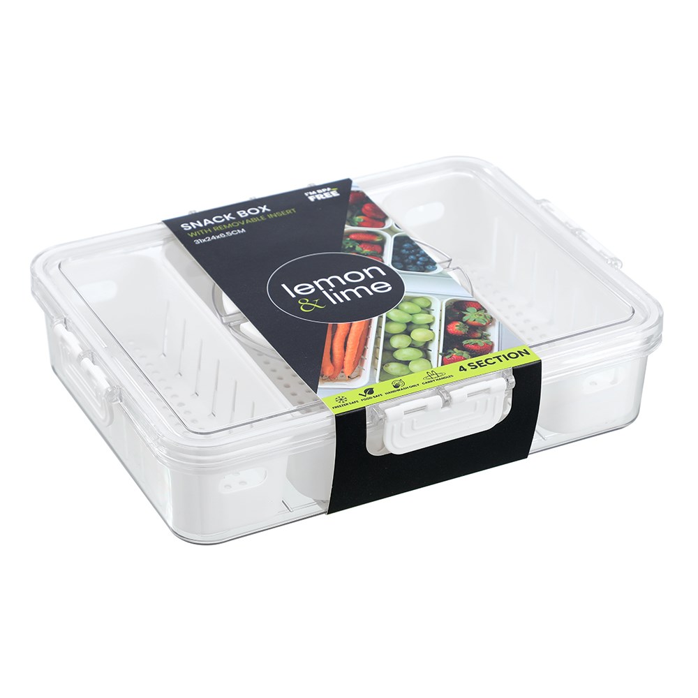 Our Lemon & Lime Snackal Box 4 Section Container keeps your snacks neatly organised with four perfectly sized compartments for effortless portioning. Its secure, snap tight lid prevents spills, making it ideal for on the go snacking at work, school, or travel. Durable and lightweight, it’s the ultimate grab and go solution for keeping your favourites fresh and separated.