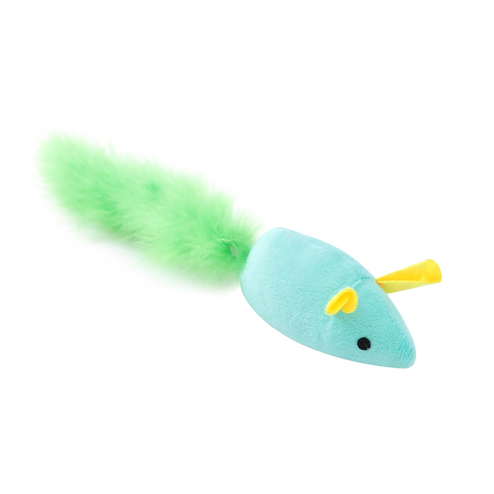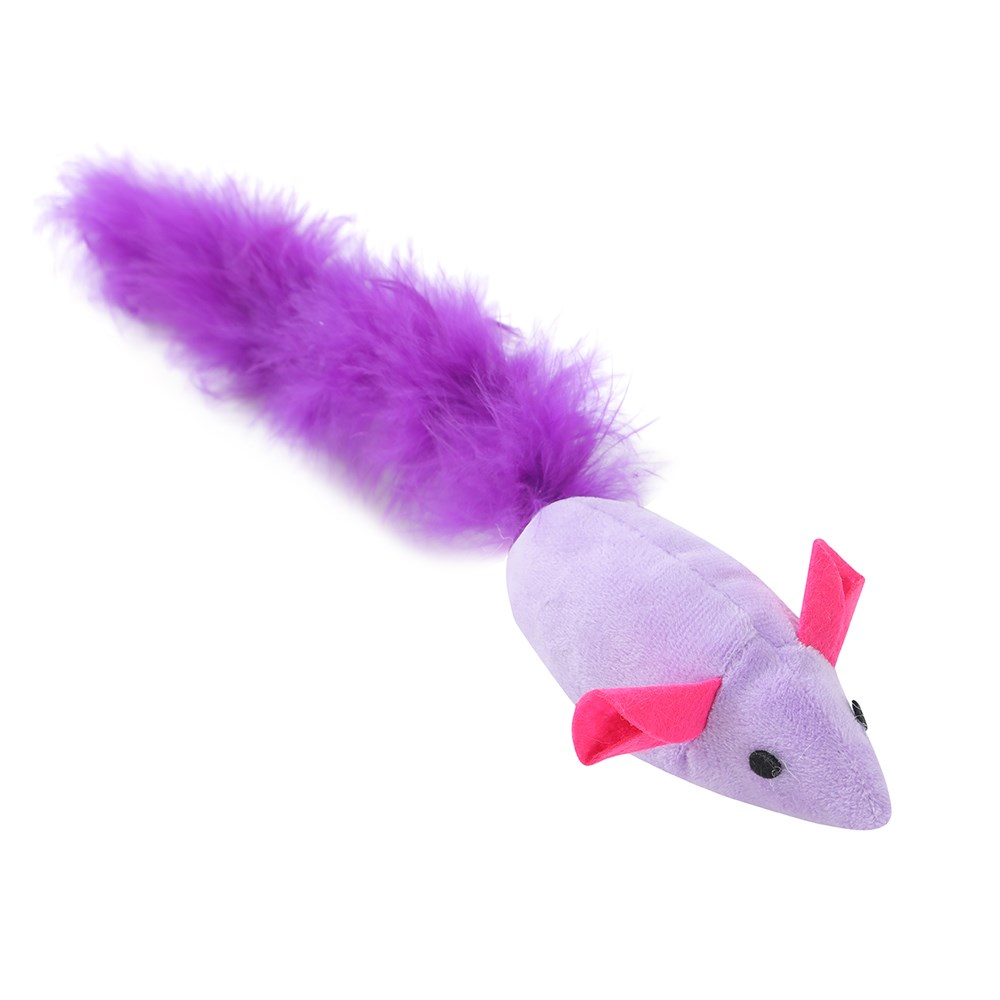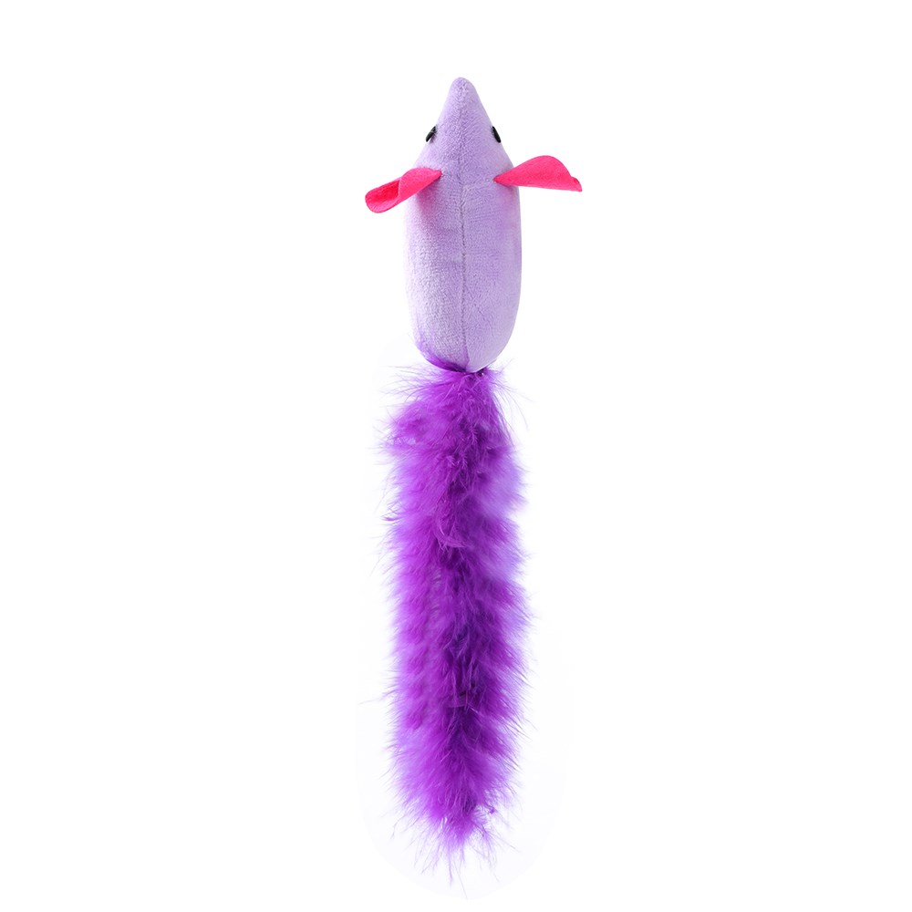 POUNCE LONG TAIL MOUSE PLUSH CAT TOY 12X3X4.5CM 2 ASSTD
