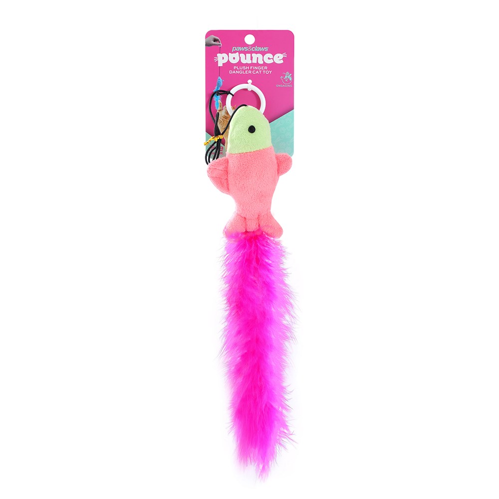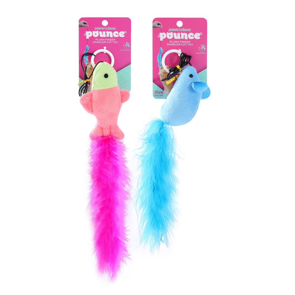 POUNCE PLUSH FINGER DANGLER W/ BOA FEATHER 4X54CM 2 ASSTD