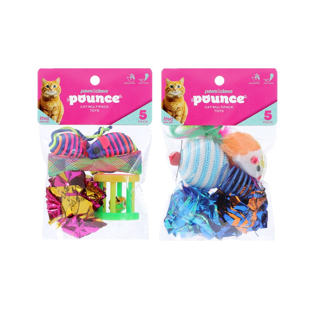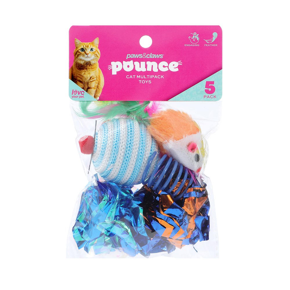 Introducing our new POUNCE Cat Toys 5PK that delivers five fun and engaging toys designed to keep your cat active, curious, and entertained. Perfect for chasing, batting, and pouncing, this variety pack helps fight boredom and encourages healthy play every day.