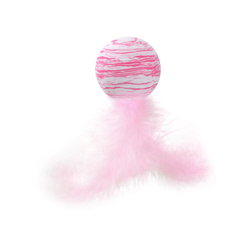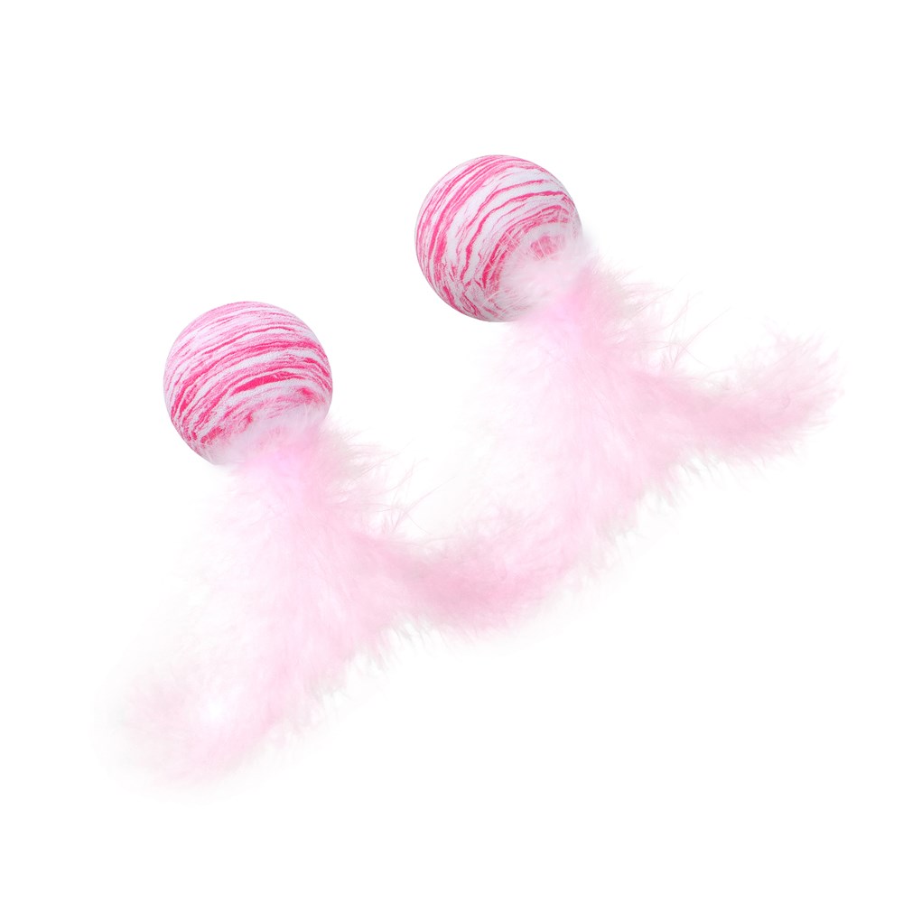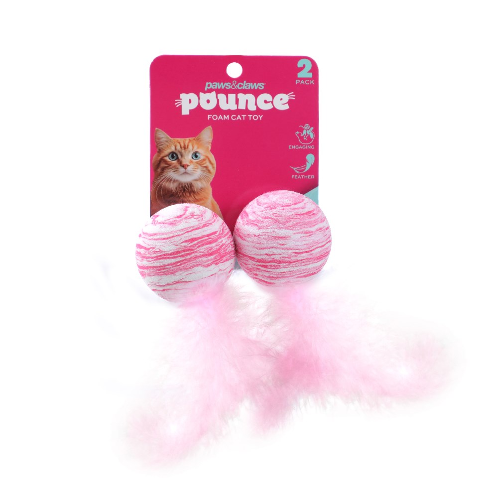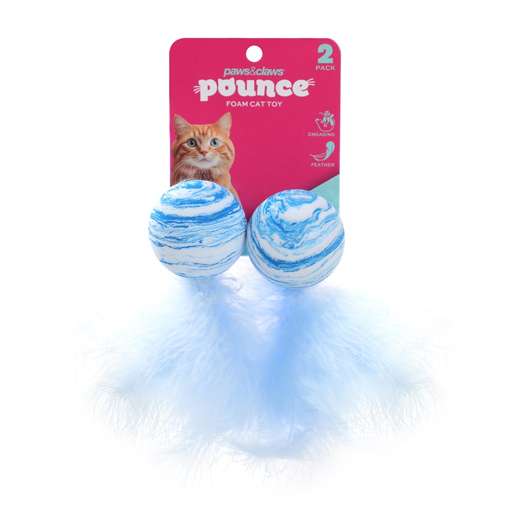 POUNCE FOAM CAT TOYS 2PK BALLS WITH FEATHER 2 ASSTD