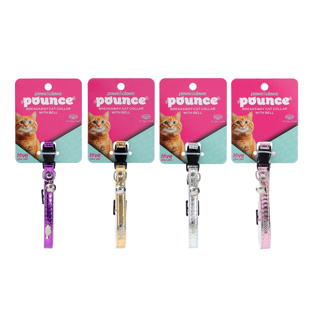 Treat your feline friends to our Paws & Claws Pounce Breakaway Cat Collar. This is the perfect stylish collar for your cat! Coming in four assorted colours, this collar is adjustable to suit most cat breeds.