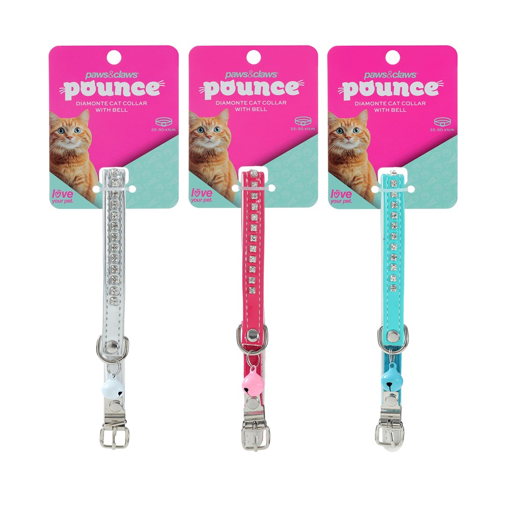 POUNCE DIAMONTE CAT COLLAR W/ BELL 22-30X1CM 3 ASSTD COLS
