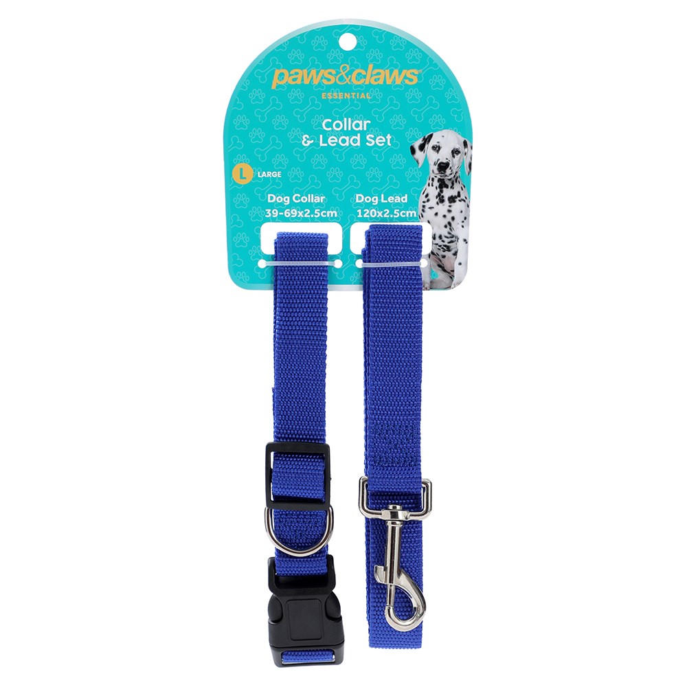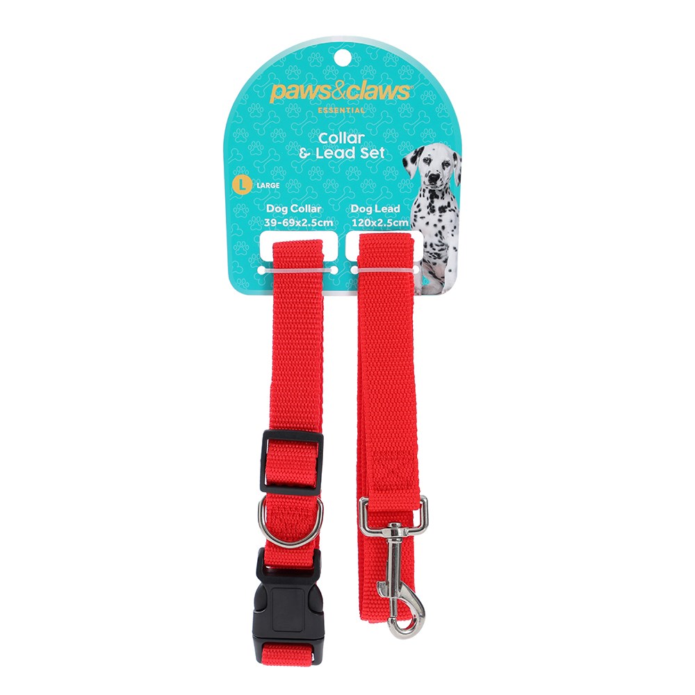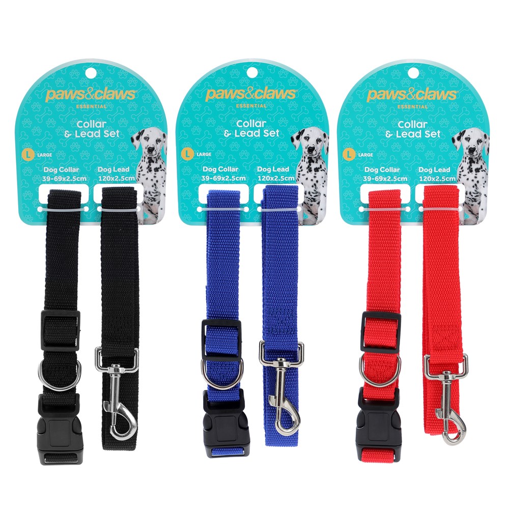 ESSENTIALS COLLAR & LEAD SET 3 ASSTD COLS LGE 39 - 69CM LEAD 120X2.5CM BLK/RED/BLUE