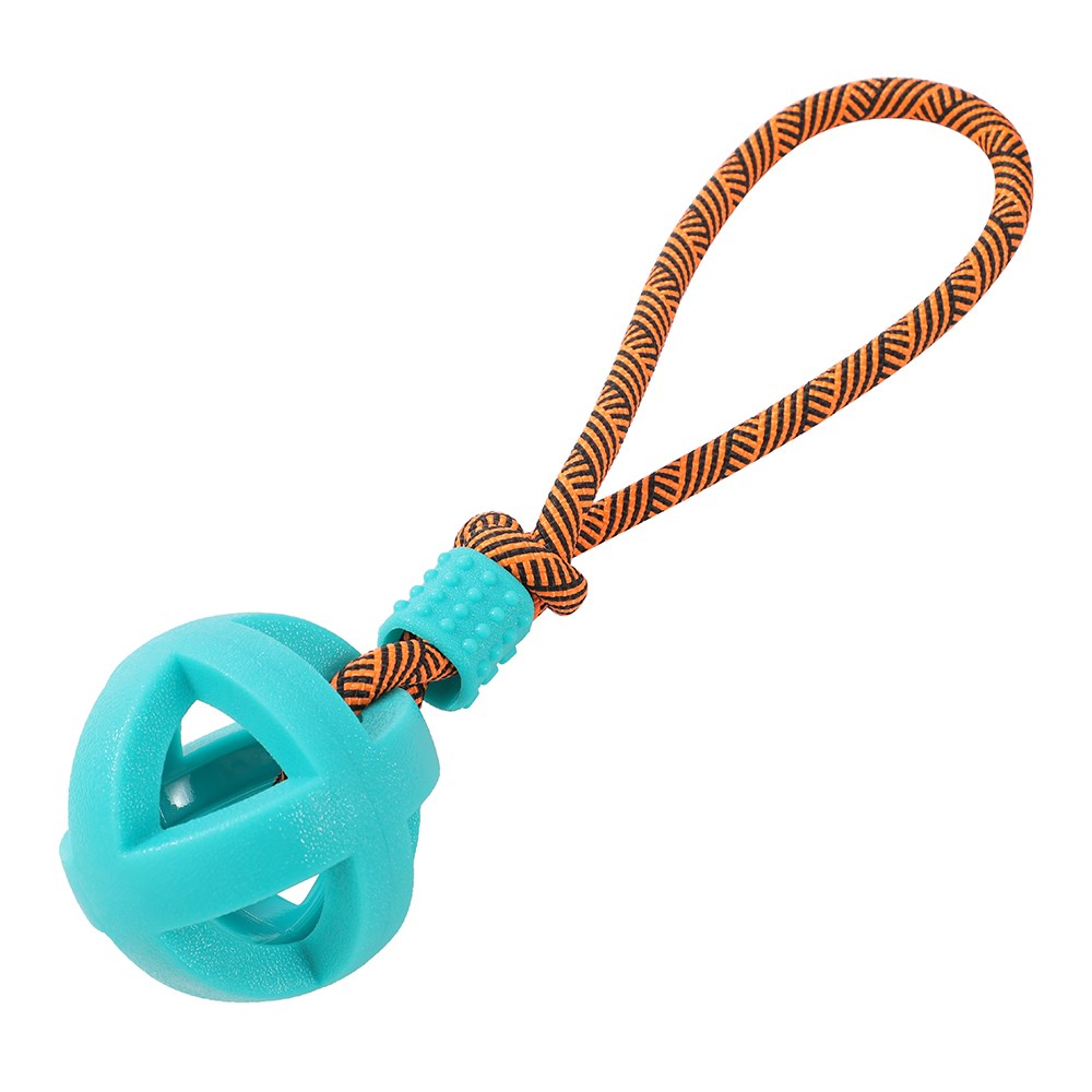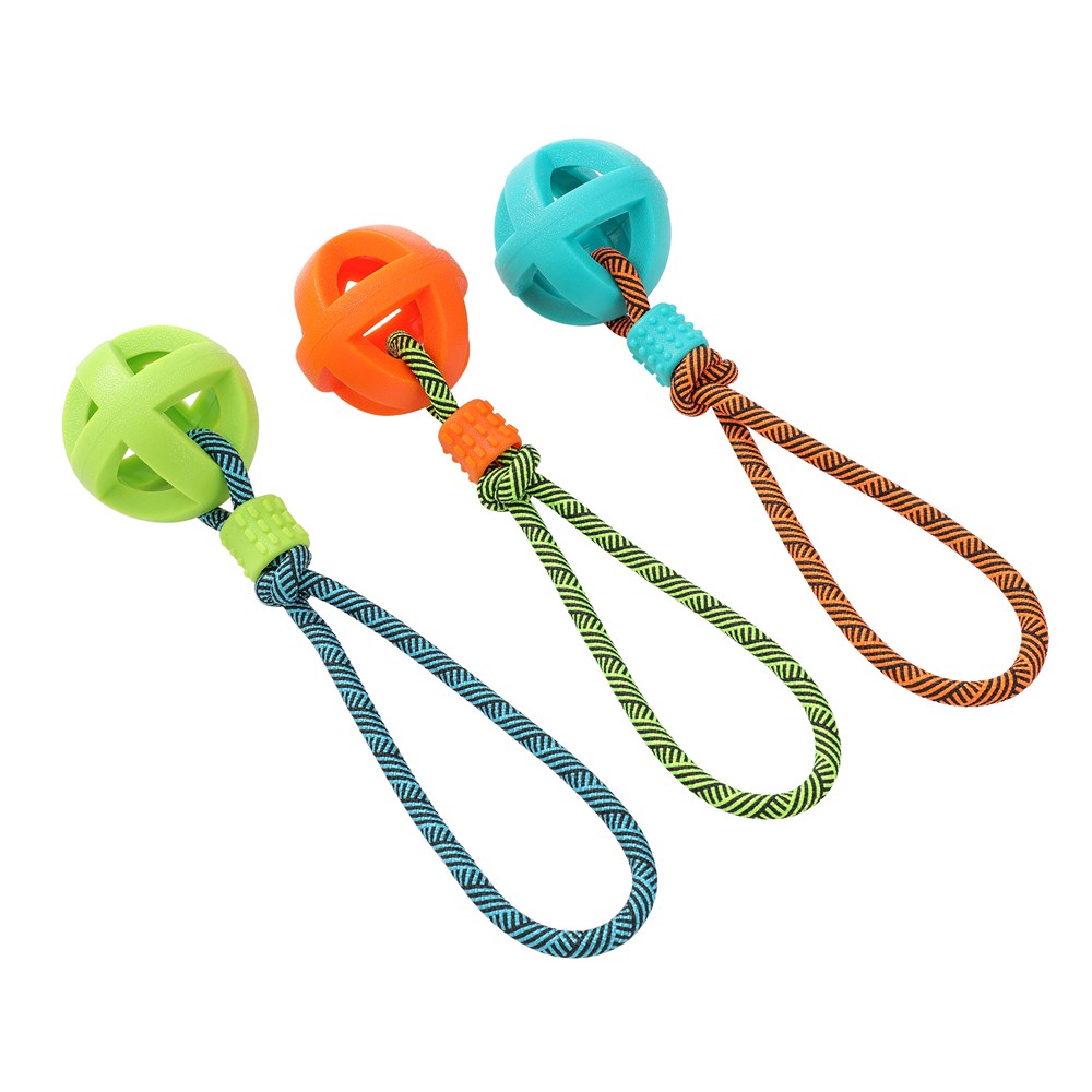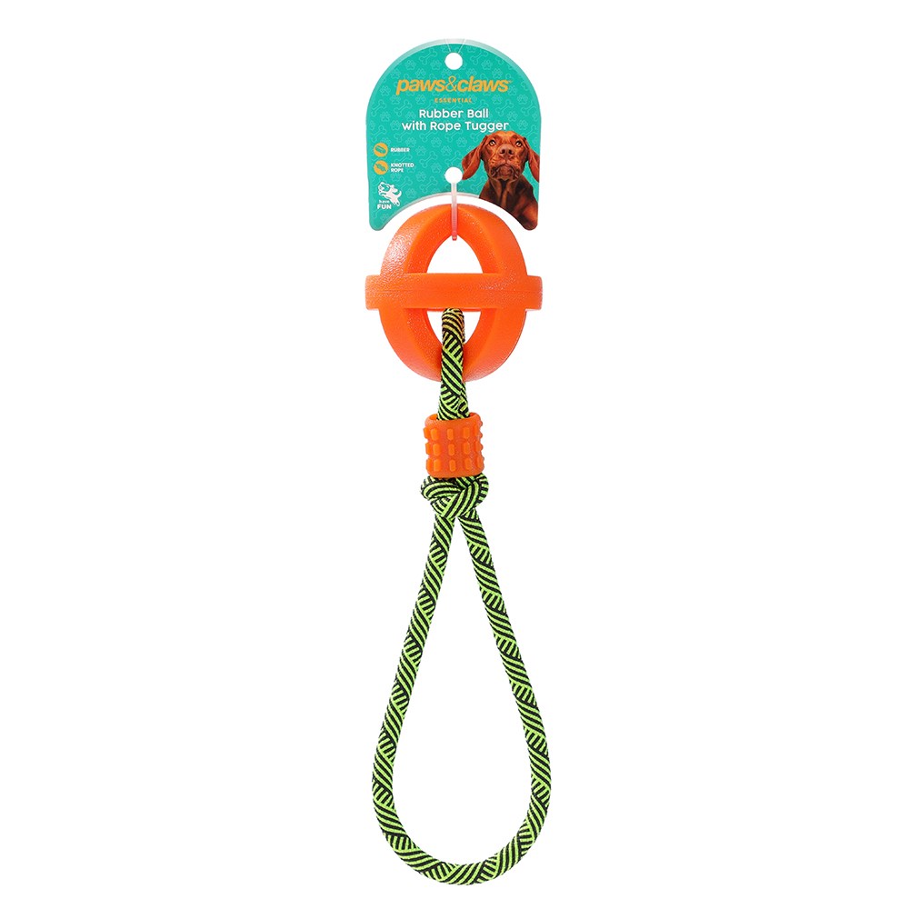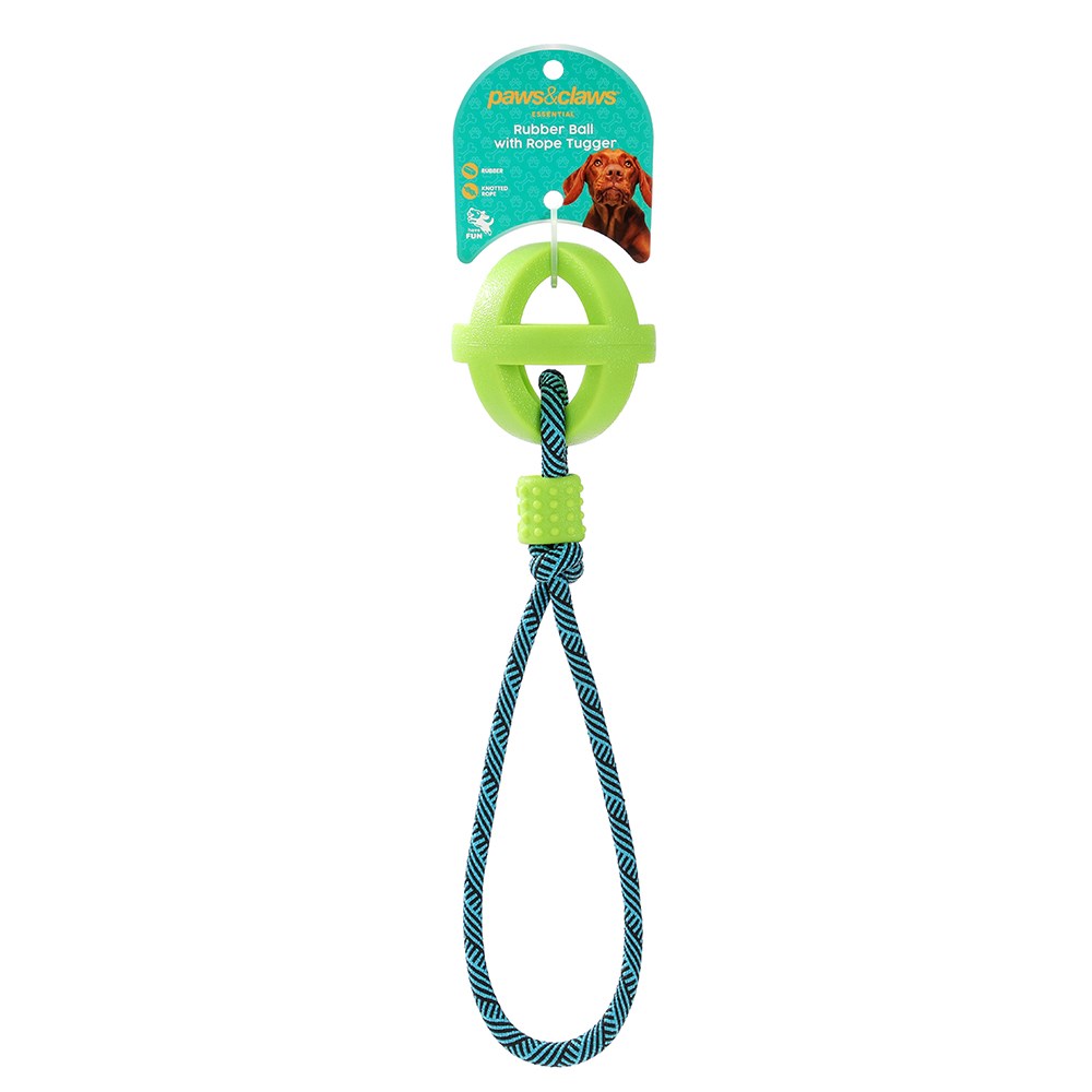 Our Paws & Claws TPR Ball with Rope is a tough, chew-resistant toy featuring a textured TPR ball and durable rope for tugging, tossing, and interactive fun. Available in three assorted colors, it's perfect for keeping your dog active and engaged.
