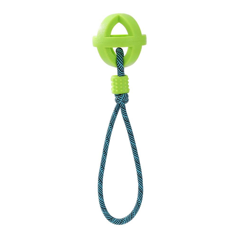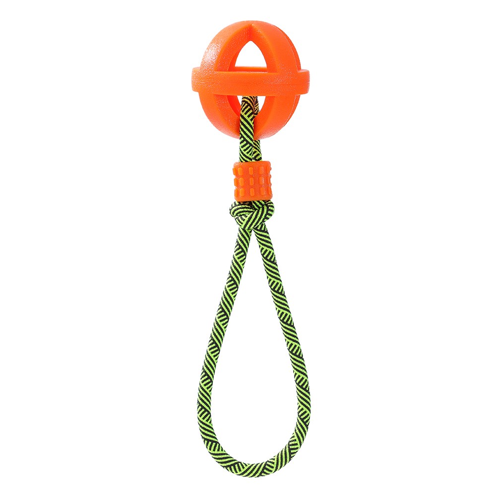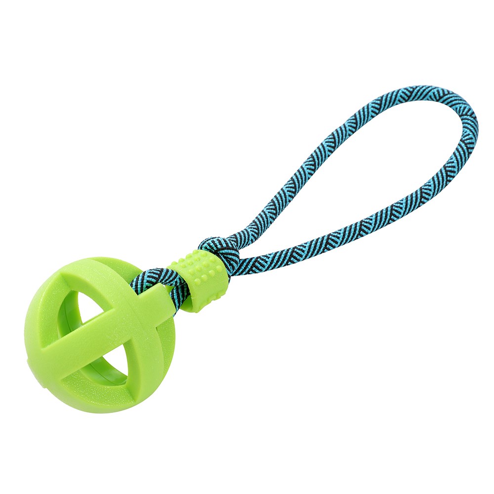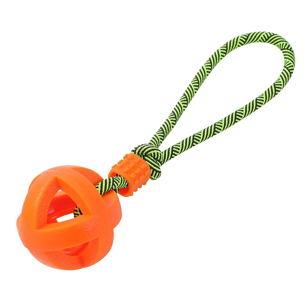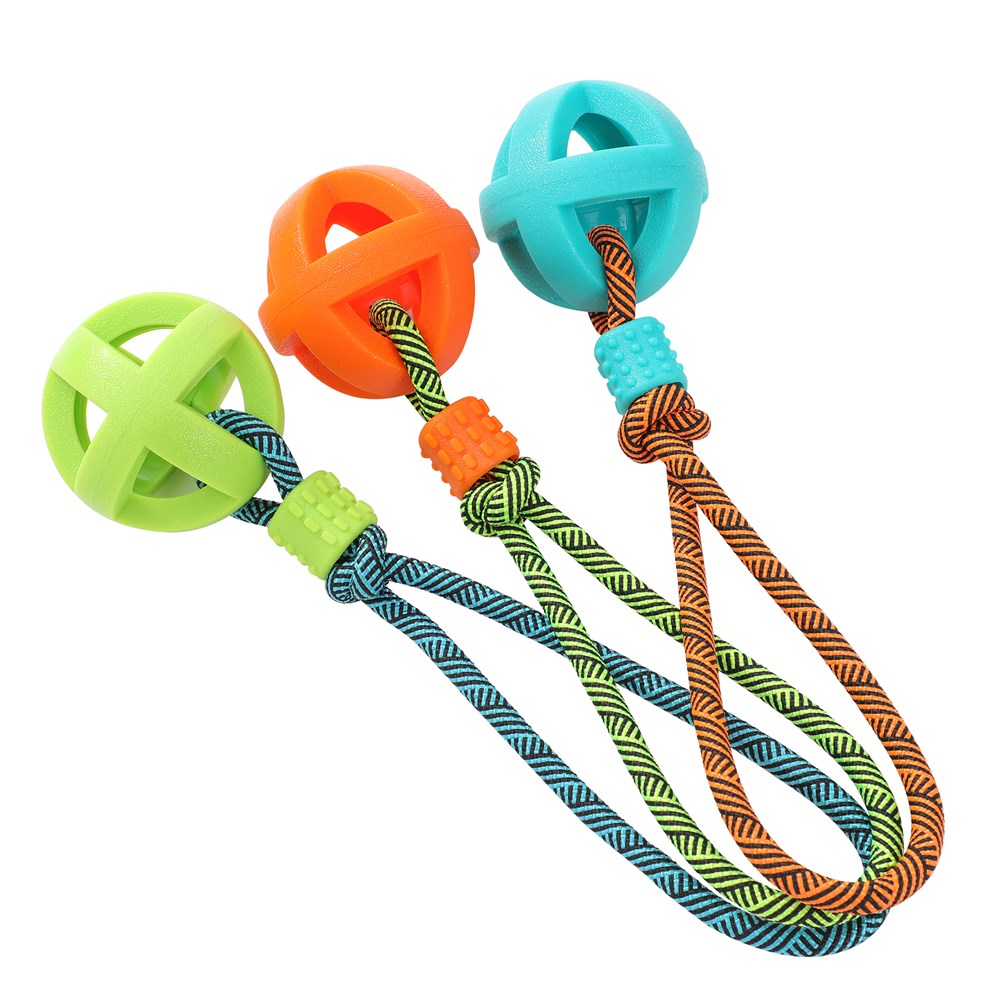 Our Paws & Claws TPR Ball with Rope is a tough, chew-resistant toy featuring a textured TPR ball and durable rope for tugging, tossing, and interactive fun. Available in three assorted colors, it's perfect for keeping your dog active and engaged.