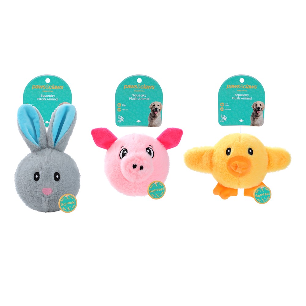 Our Paws & Claws Plush Animal Squeaky Balls are soft, cuddly toys designed to keep pets entertained with its playful squeak and bounce. Made with durable, pet safe materials, it’s perfect for fetch, chewing, and snuggling. Its adorable animal designs adds extra charm to every playtime session.