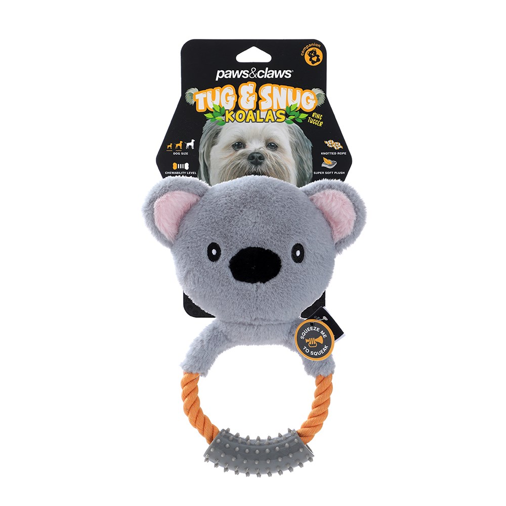 Our Paws & Claws Plush Koala Rope Ring Tugger Dog Toy combines soft plush comfort with a sturdy rope ring for endless tugging, tossing, and chewing fun. Its adorable koala design adds charm, while the durable construction helps support healthy play and dental exercise. Perfect for interactive bonding time with your pup.