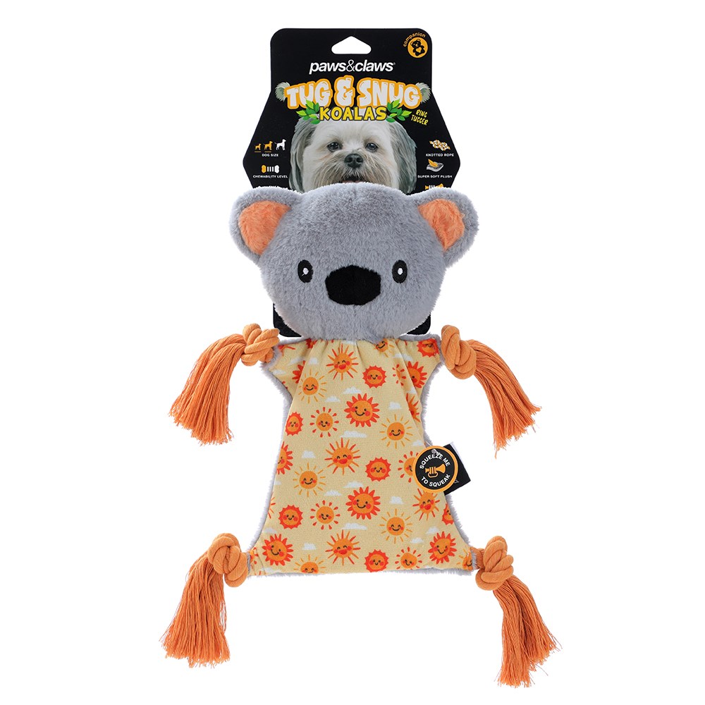 Our Paws & Claws Plush Koala Tugger with Rope Pet Toy combines a soft, cuddly koala plush with a sturdy rope handle for interactive tugging and tossing fun. Designed for durability and gentle play, it keeps pets engaged while encouraging healthy activity. A charming, versatile toy perfect for bonding time with your furry friend.
