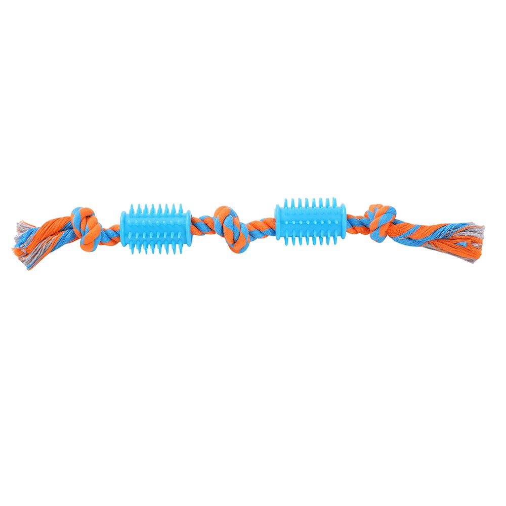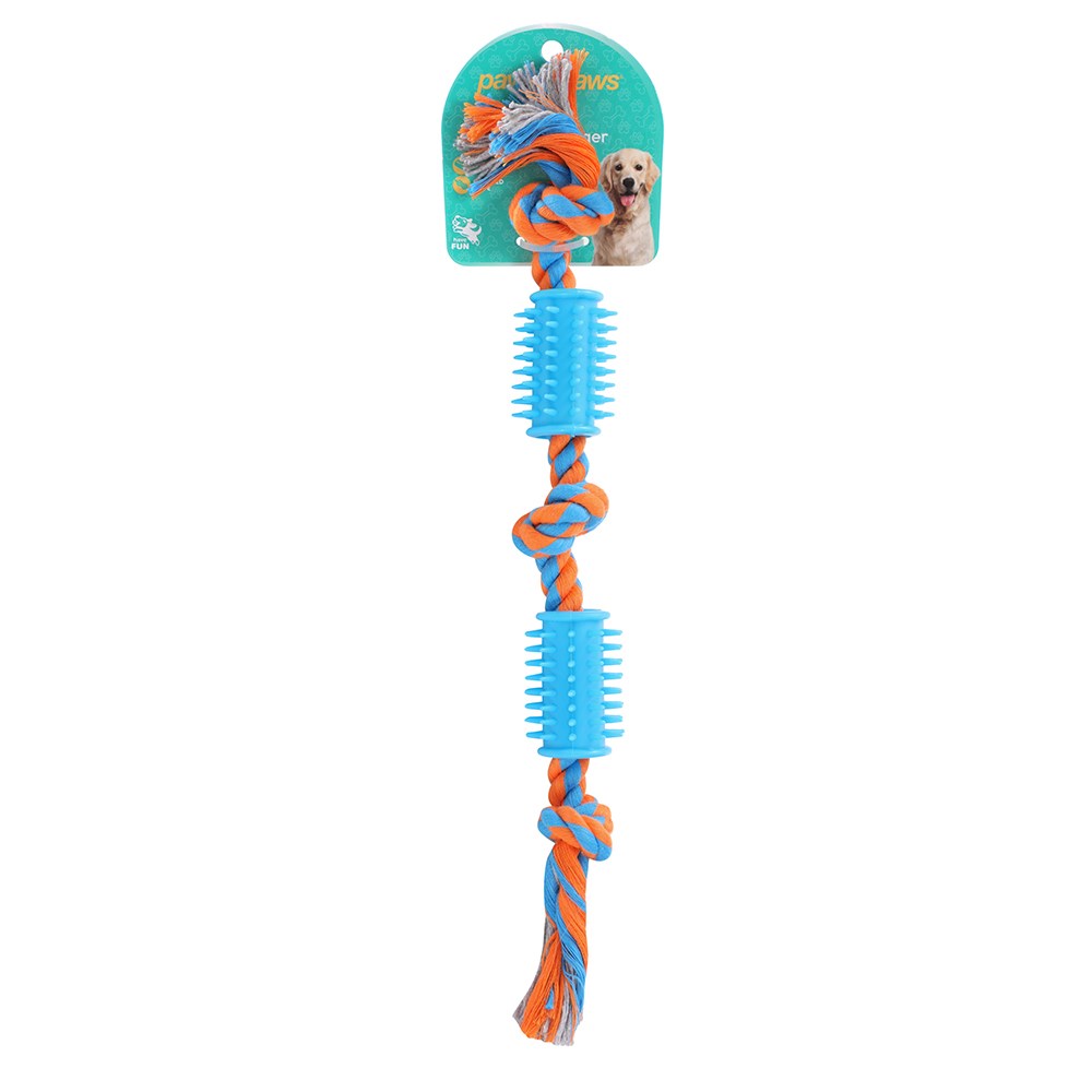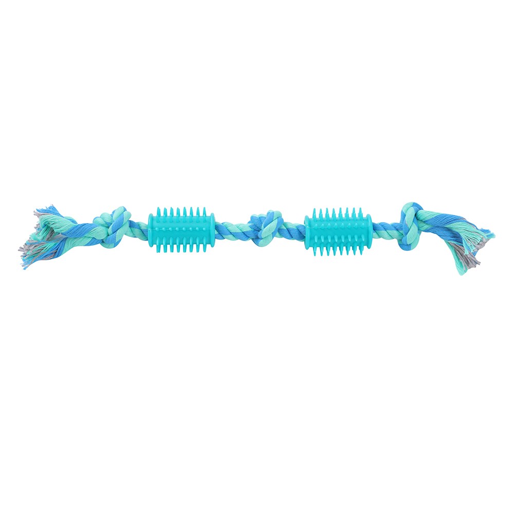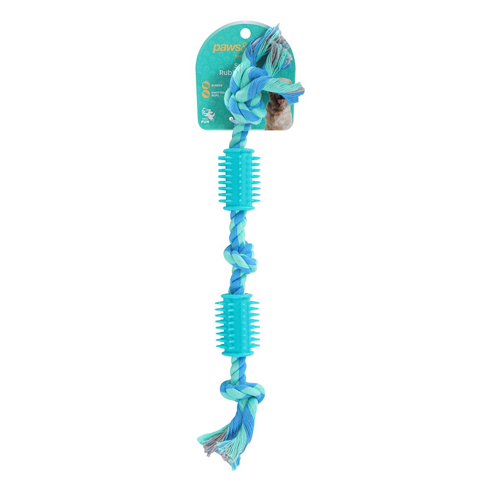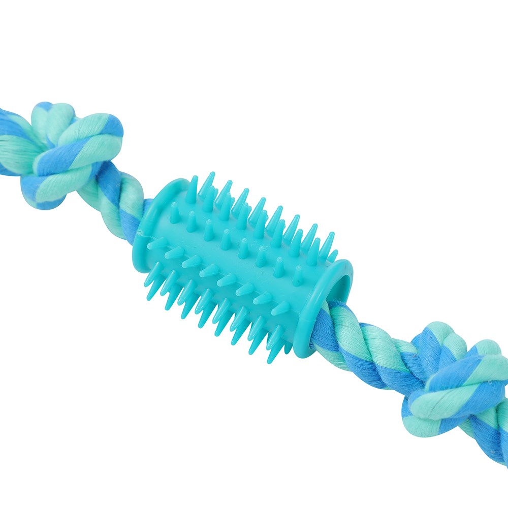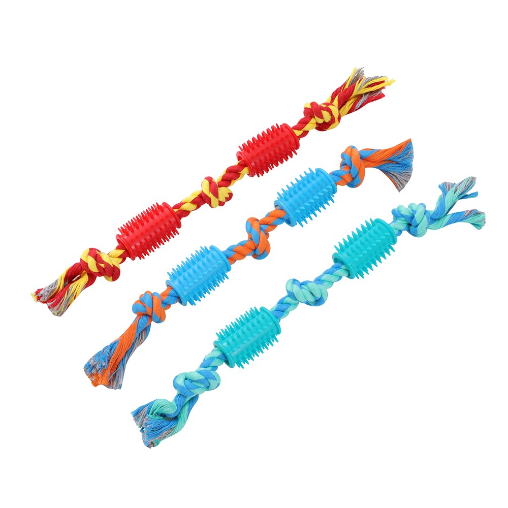 ROPE + SPIKEY RUBBER TUG TOY 40X4X1.6CM 3 ASSTD DESIGNS