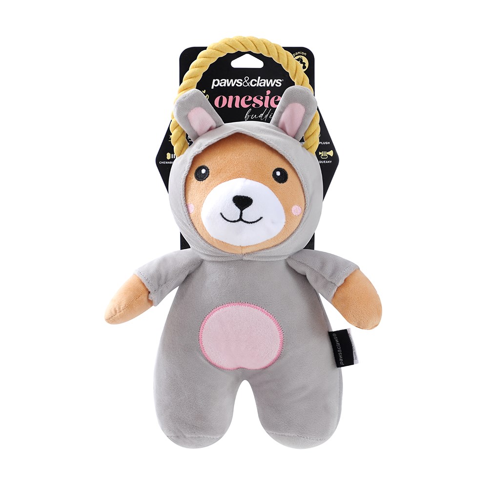 Our Paws & Claws Onesie Plush Tugger is a soft yet durable dog toy designed for endless tugging and cuddling fun. Made with plush fabric and sturdy tug handles, it’s gentle on teeth but tough enough for playtime. Perfect for interactive games or cozy snuggles after play.