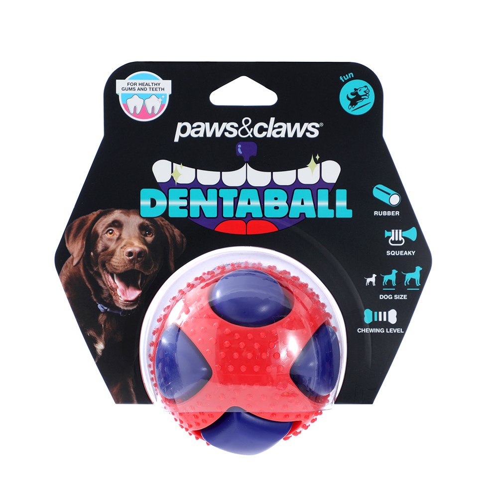 Keep your furry friends entertained for hours with our Paws & Claws DENTABALL Dog Toy. Designed to help keep teeth and gums clean and healthy, this squeaky sensory ball encourages active play and satisfies natural chewing instincts. Ideal for medium to large dogs, it delivers hours of engaging, tail-wagging fun.