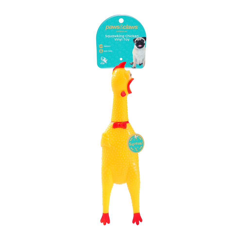 Bring on the laughs with our Paws & Claws Squawking Vinyl Chicken Dog Toy. Made from durable, non toxic vinyl, it’s perfect for fetch, chew, and playtime fun. Every squeeze delivers a loud squawk that keeps your pup entertained and tail wagging happy.