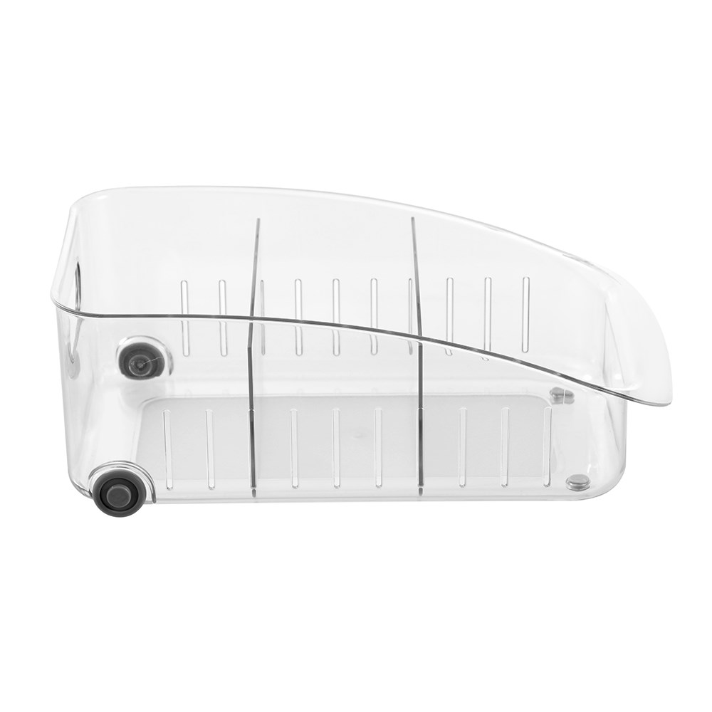 Our Boxsweden Crystal Roller Tray With Dividers offers smooth, easy access to your essentials while keeping everything neatly organised. Its clear, durable design and divided compartments make it perfect for cosmetics, snacks, office supplies, or pantry items. With built-in rollers for effortless glide, it maximises convenience and storage efficiency in any space.