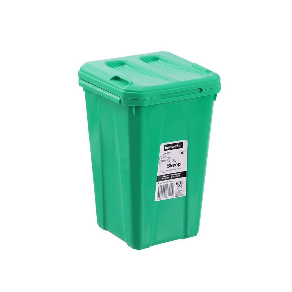 Clean up with our Boxsweden Skeep Wheelie Bin 7L offers a compact yet durable waste solution, designed for easy mobility with smooth rolling wheels and a sturdy lid. Its sleek, space saving design makes it perfect for both indoor and outdoor use.